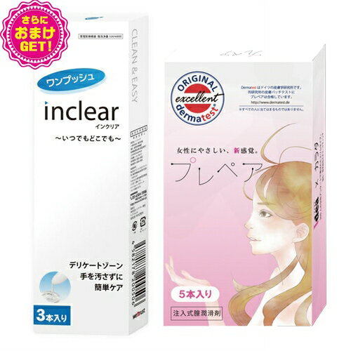 ◆【あす楽対応】【さらに選べるおまけ付き】【膣洗浄器】インクリア(inclear)3本入り + 【注入式膣潤滑剤】プレペア(prepare) 5本入り ※完全包装でお届け致します。【HLS_DU】